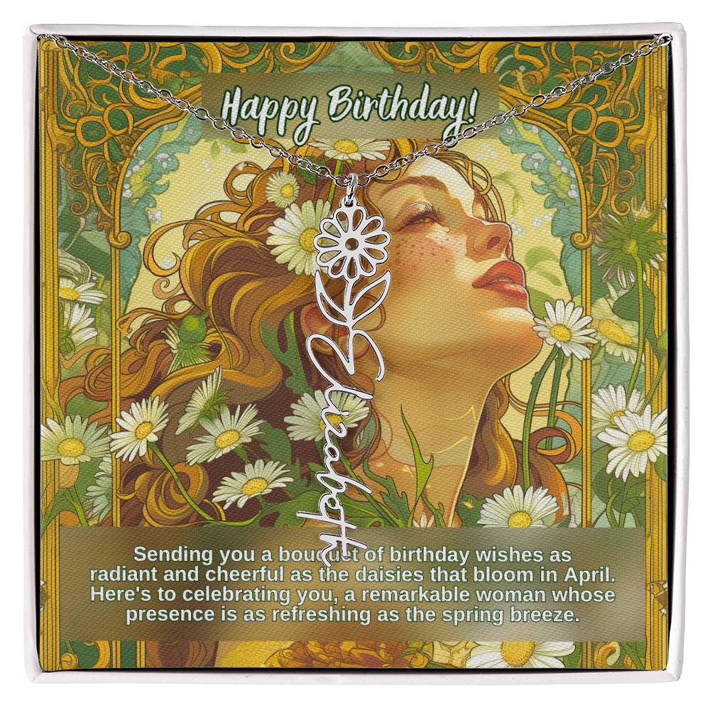 April Birth Flower Name Necklace