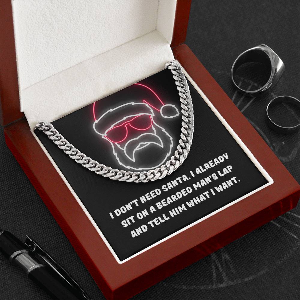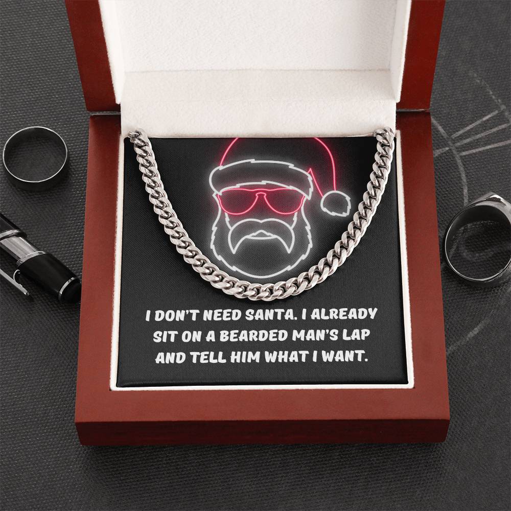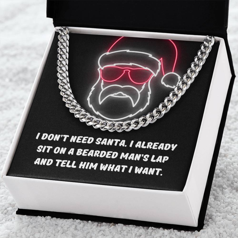 "I don't need Santa. I already sit on a bearded man's lap and tell him what I want."