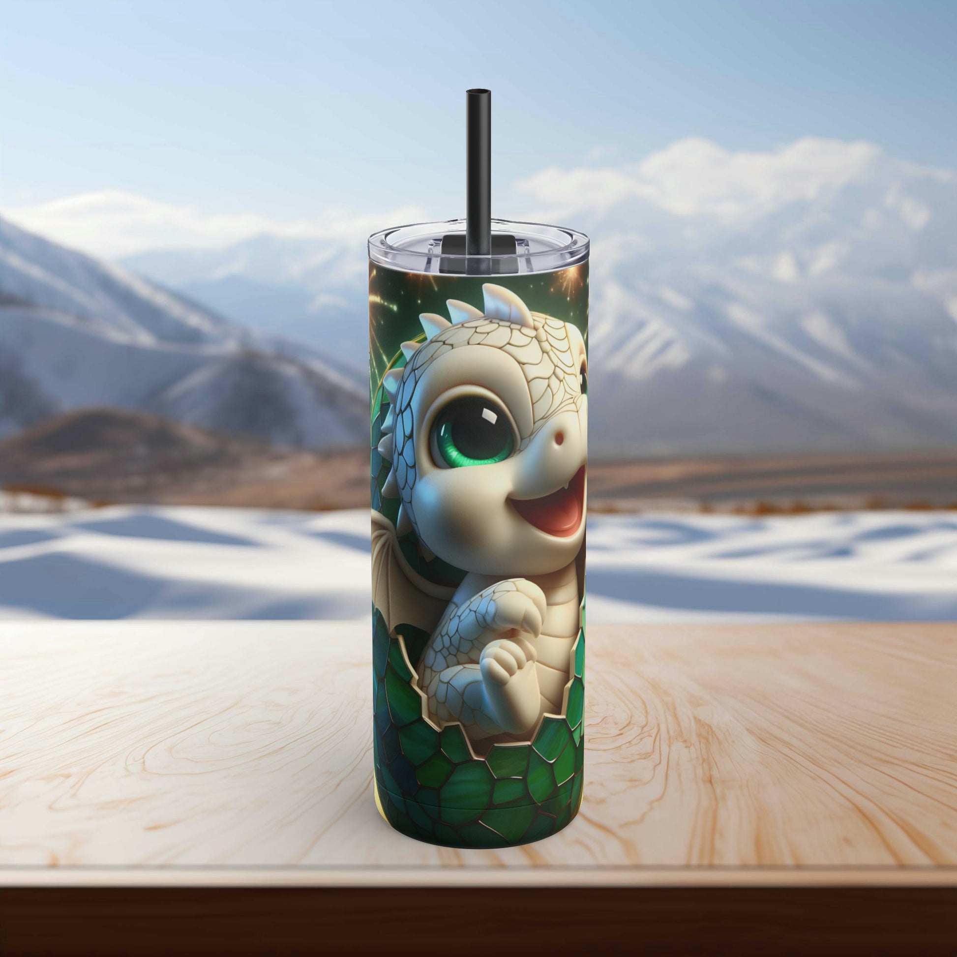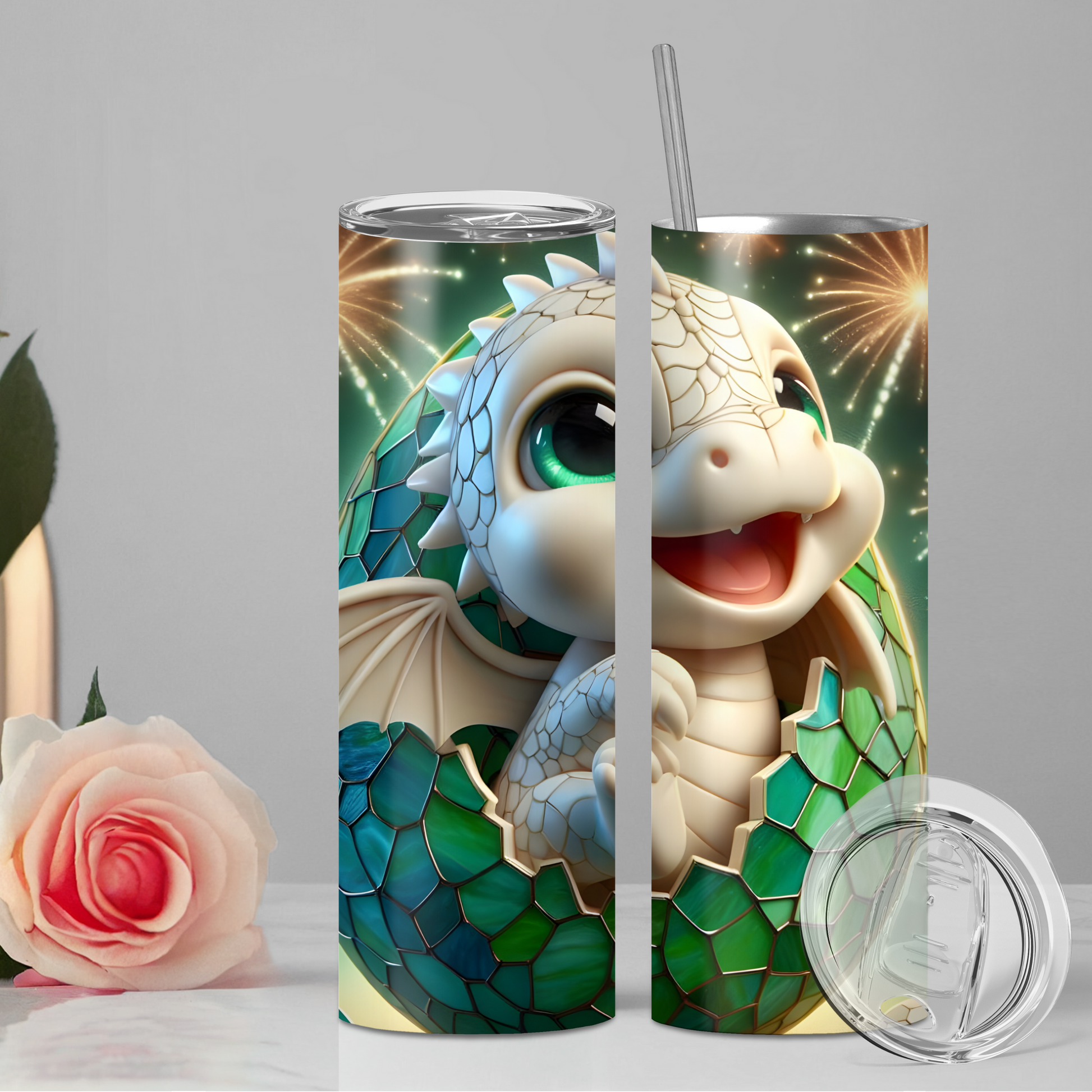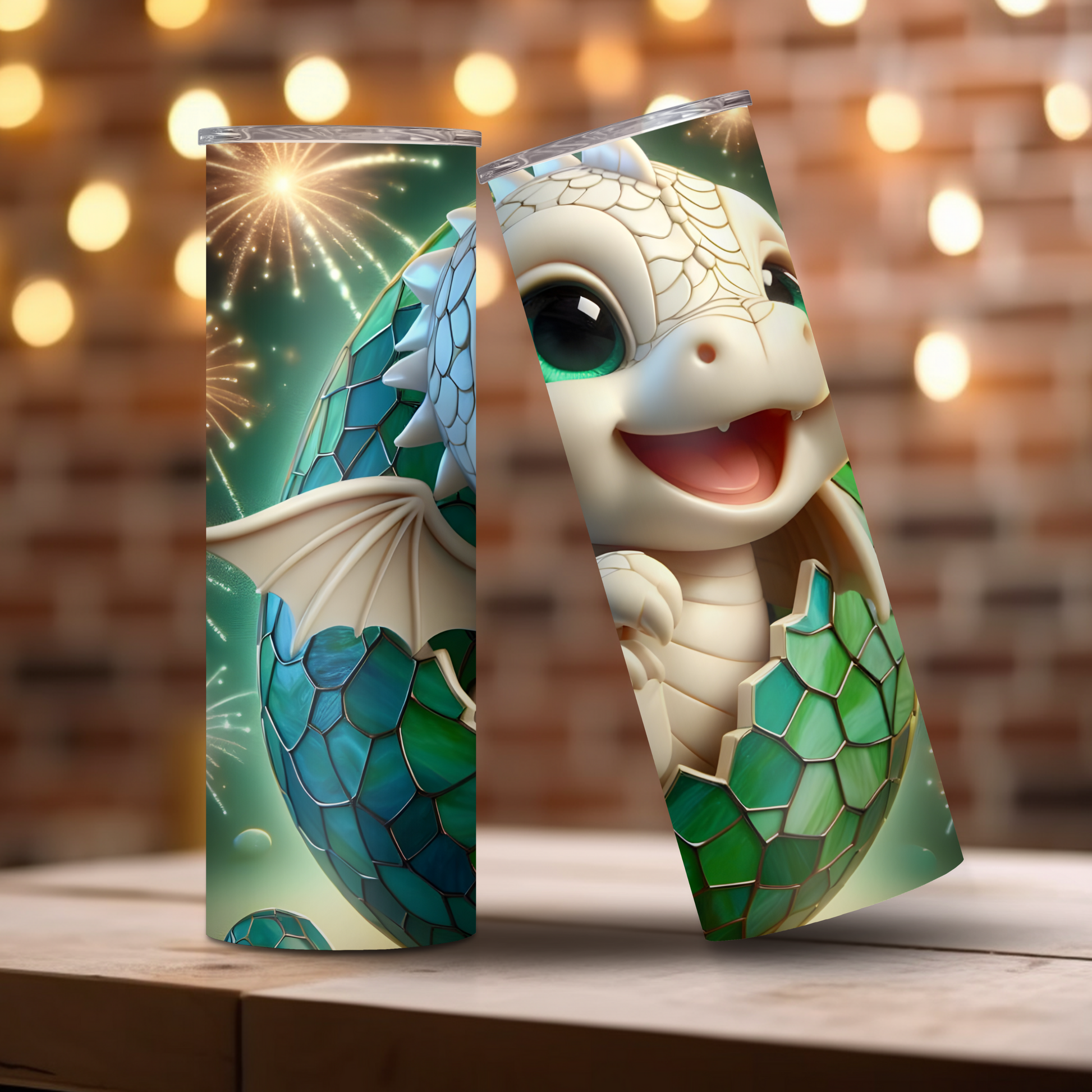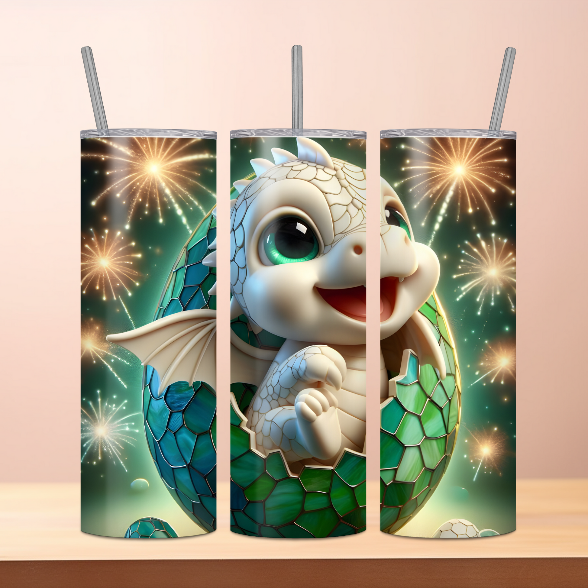 Introducing the exclusive 2024 Dragon New Year Celebration Tumbler, featuring an enchanting design of an adorable baby dragon emerging from its egg amidst a backdrop of breathtaking fireworks. This special edition Skinny Matte Tumbler, 20oz, combines functionality with charm, perfect for commemorating this festive occasion.