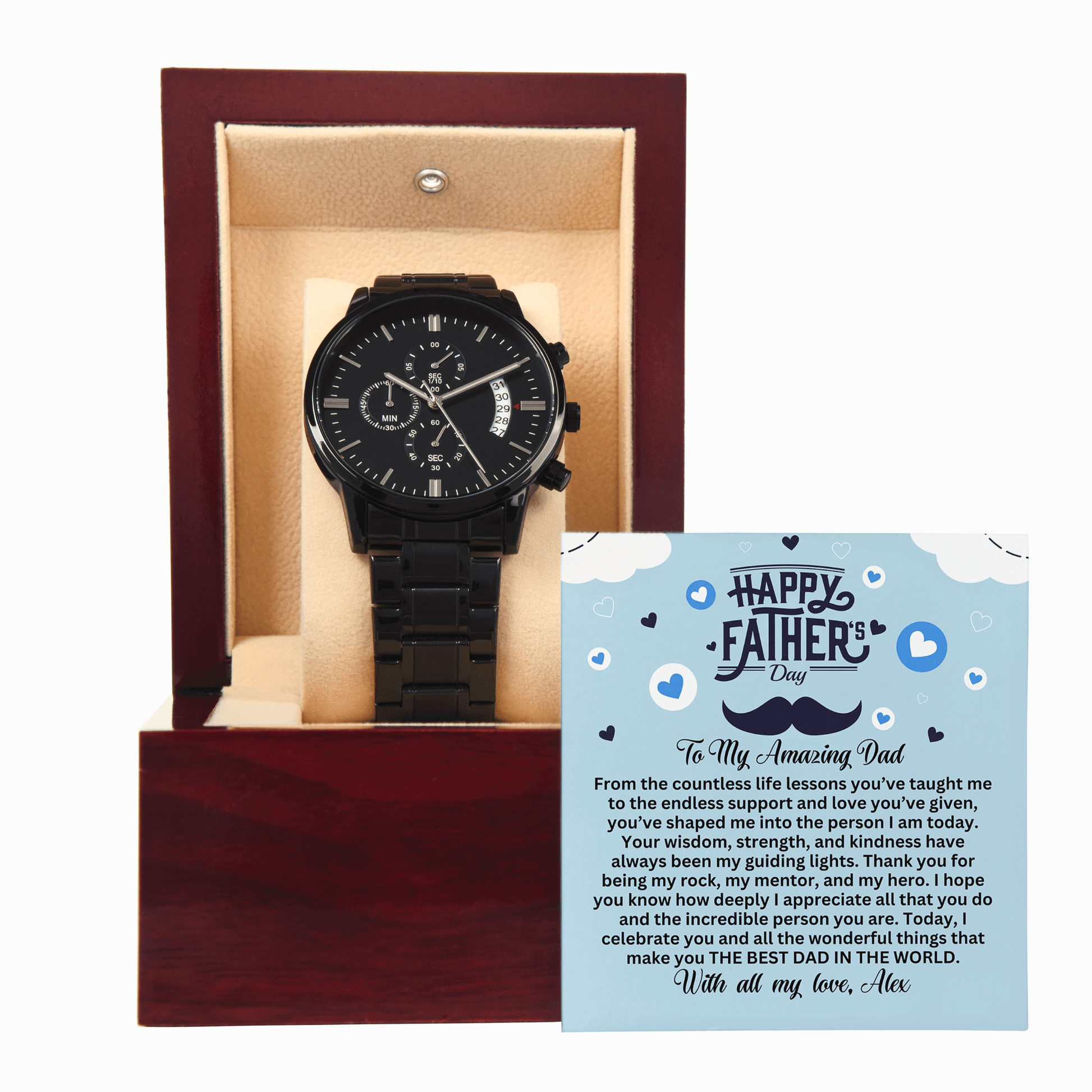 Your dad will appreciate the thoughtfulness behind this versatile timepiece, which arrives in a beautifully packaged gift box, ready to be delivered directly to him. It’s more than just a watch; it’s a symbol of your gratitude and love.