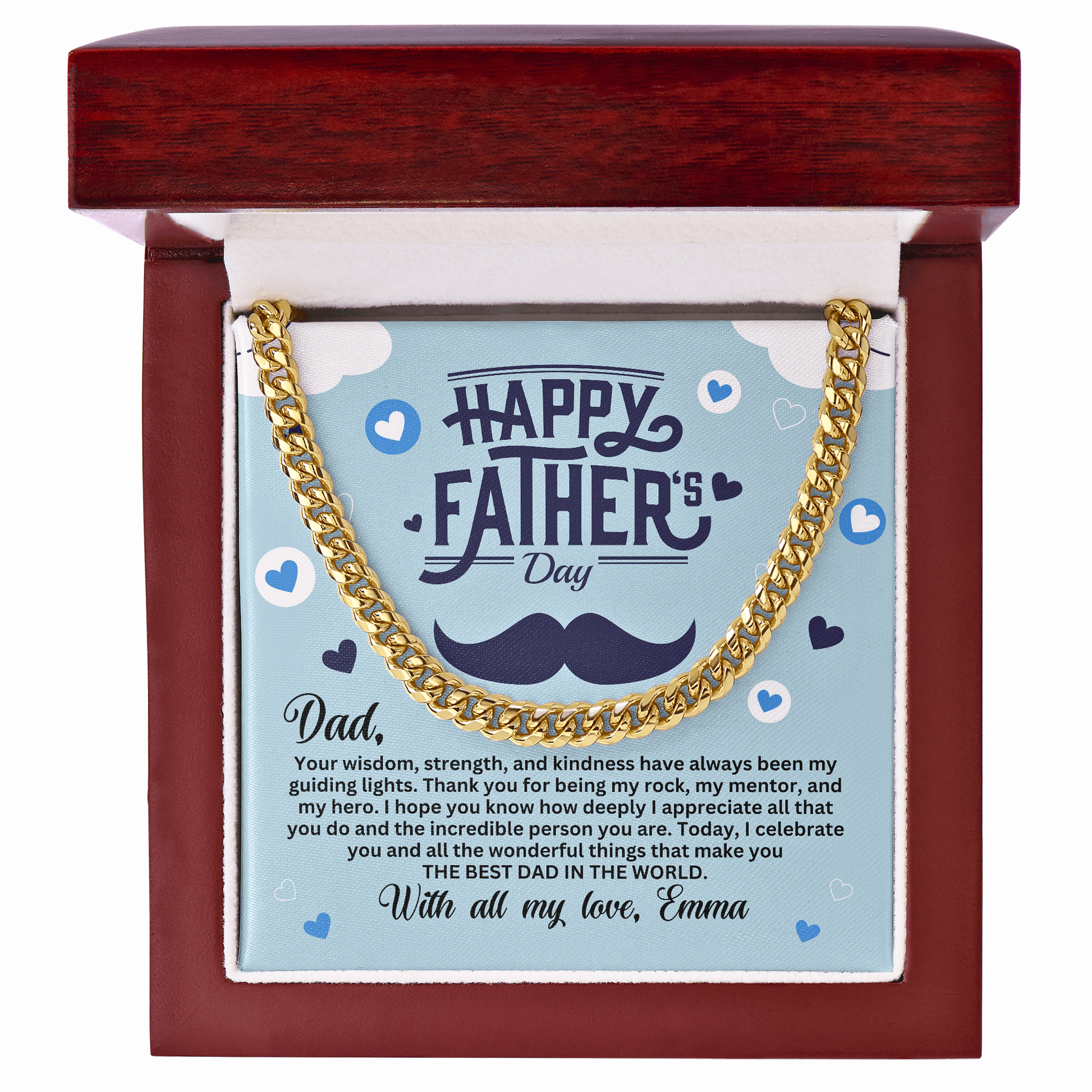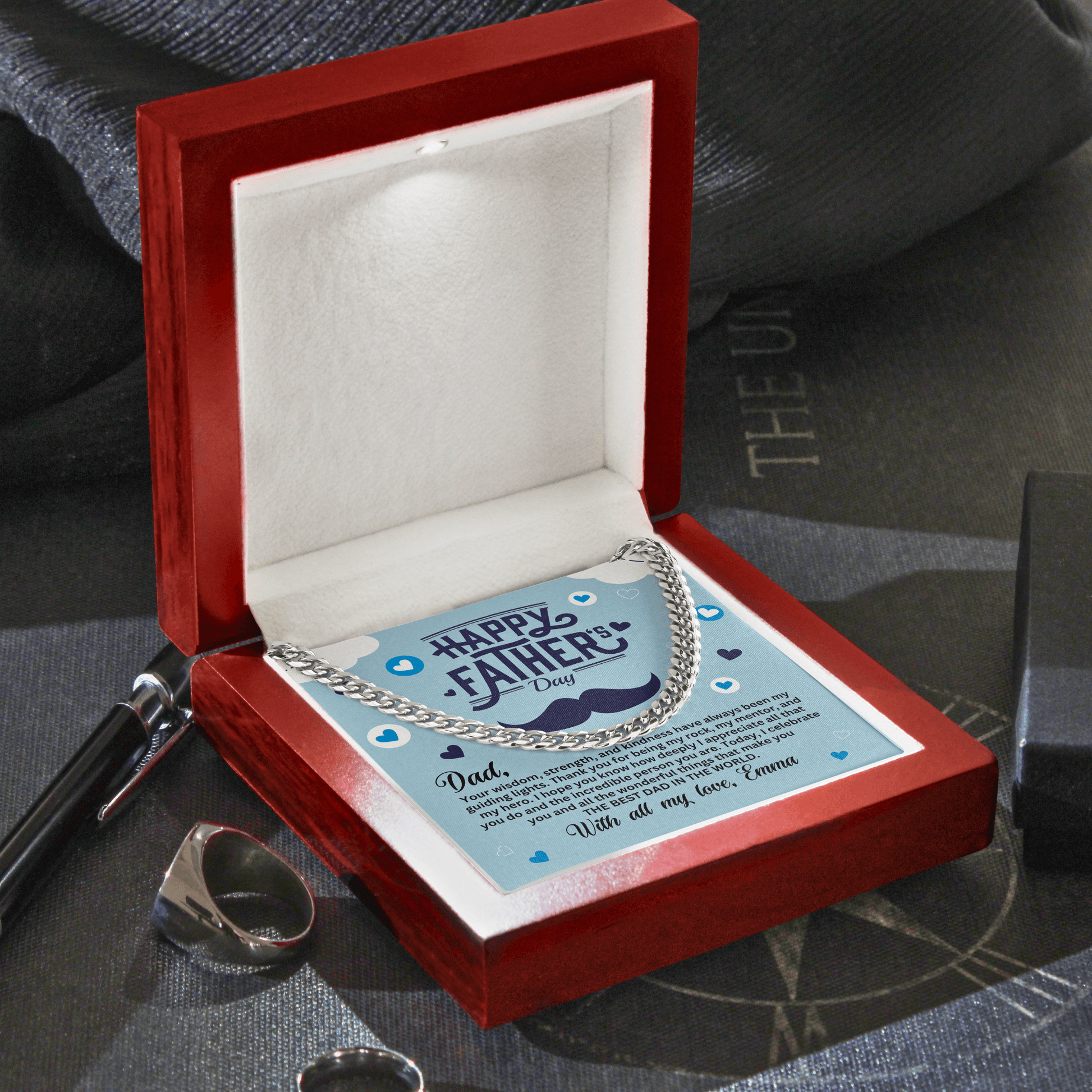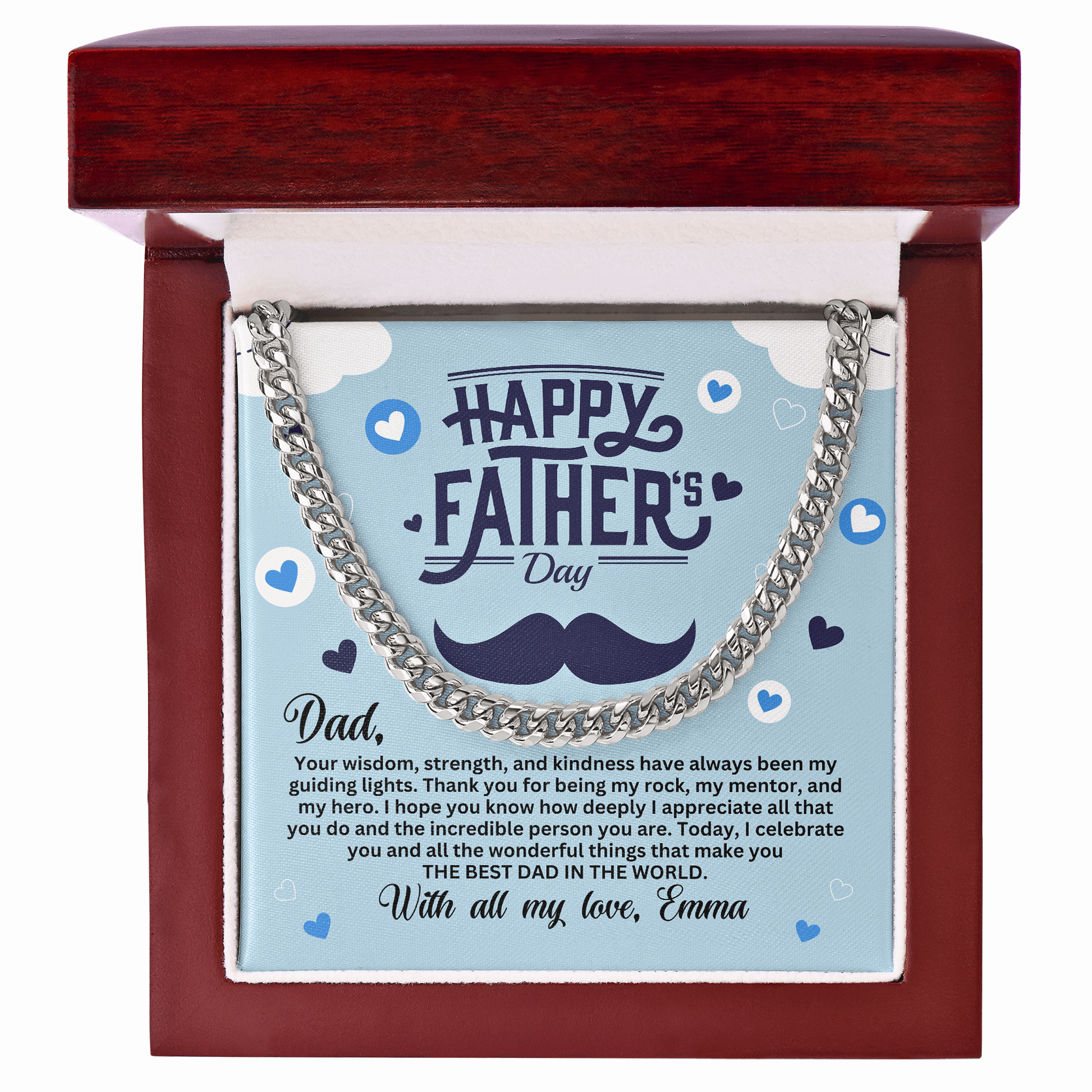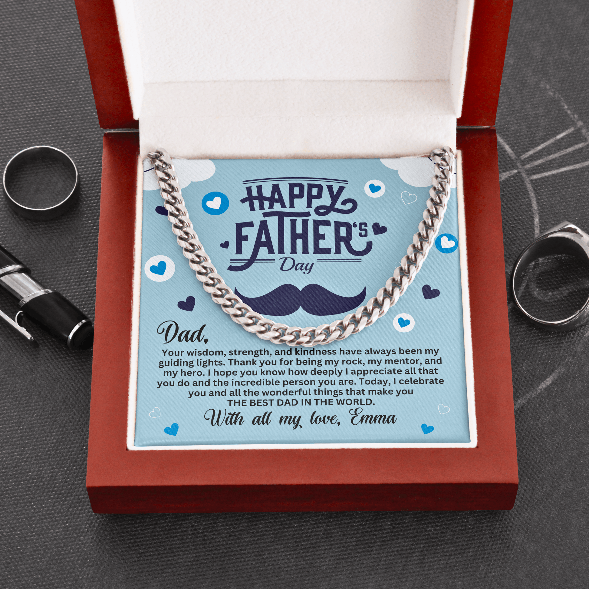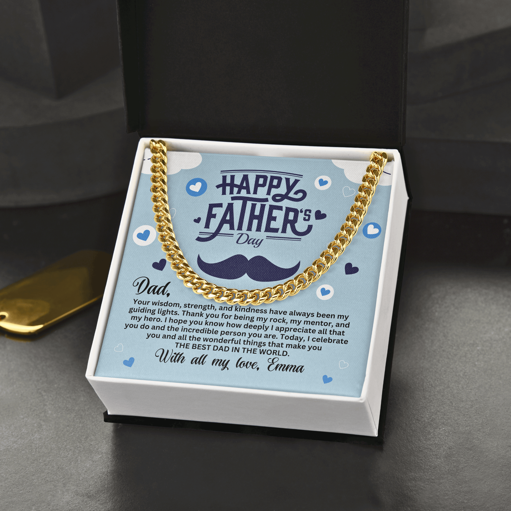 Looking for the perfect Father’s Day gift for the dad who wants nothing or already has everything? Celebrate dad with this timeless Cuban Link Chain, a cool Father’s Day necklace that’s both classy and stylish. This necklace is not just a piece of jewelry; it's a heartfelt, sentimental gift for dad from daughter or son, complete with a personalized message card that makes it truly special.