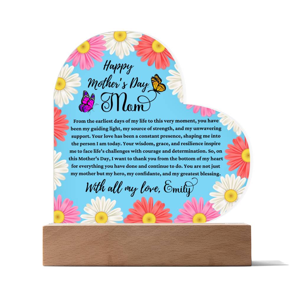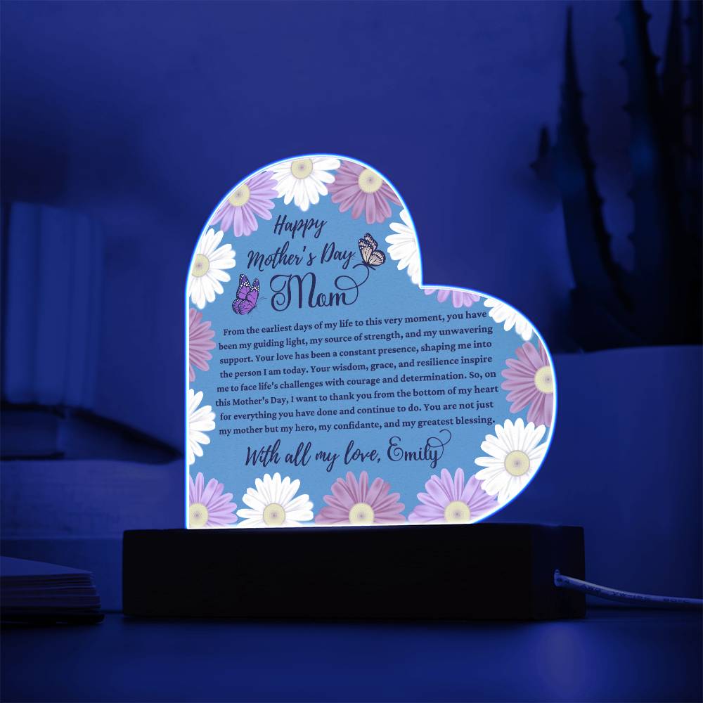 Happy Mother's Day Mom Sky Blue Acrylic Heart Plaque