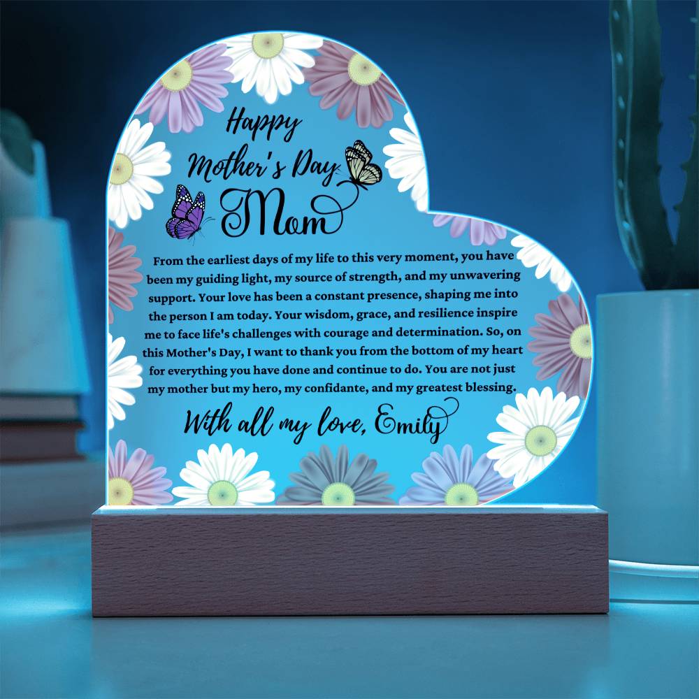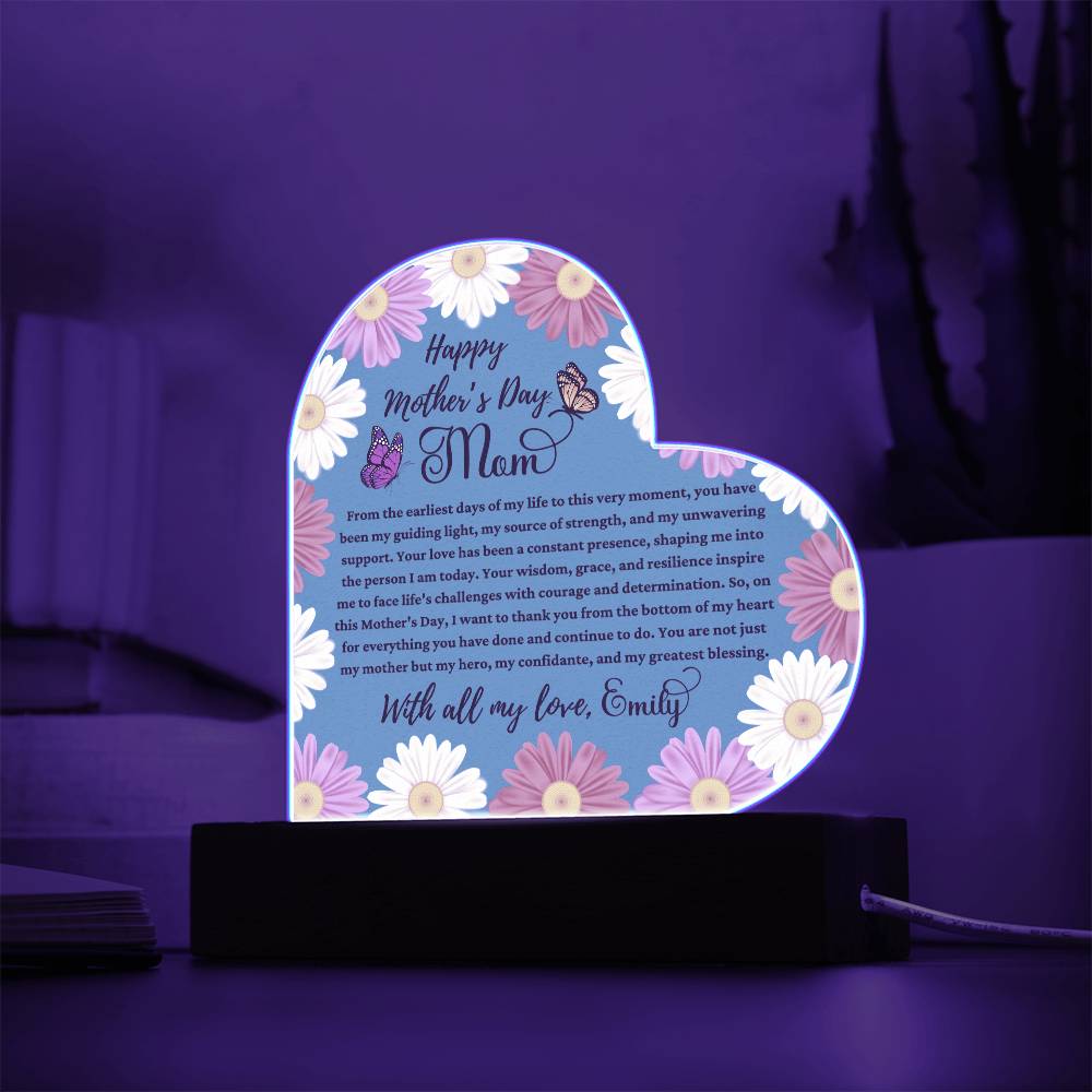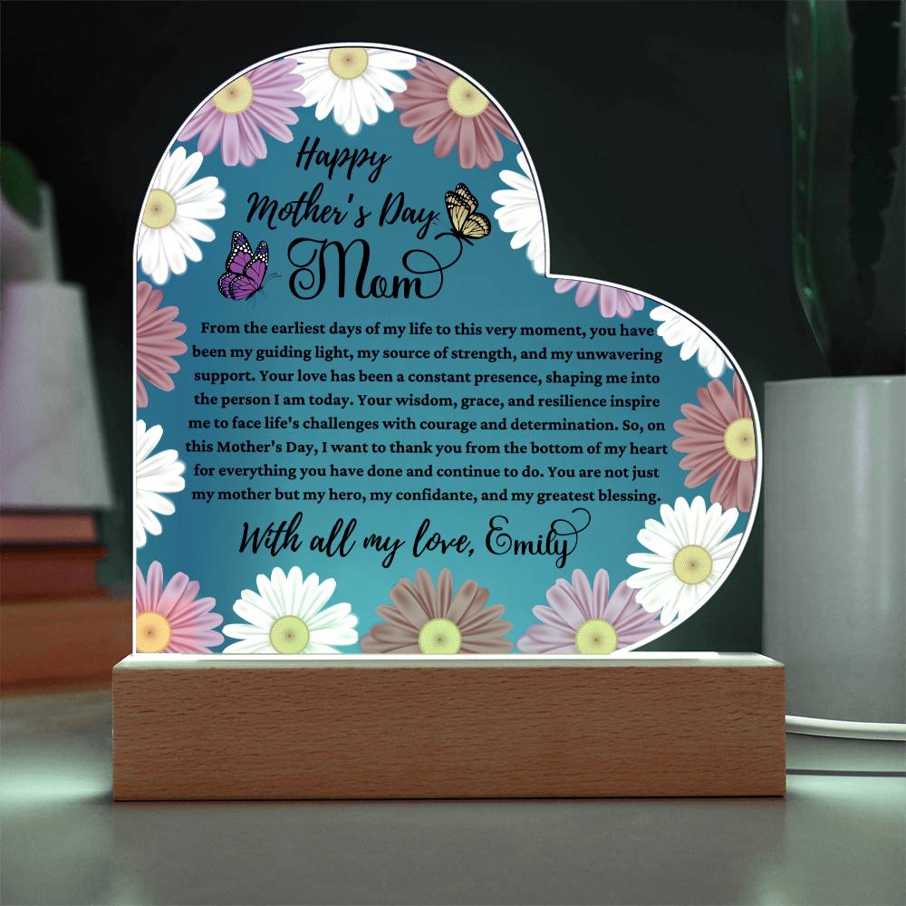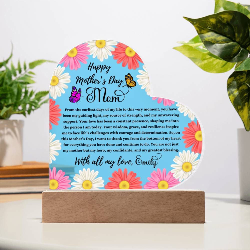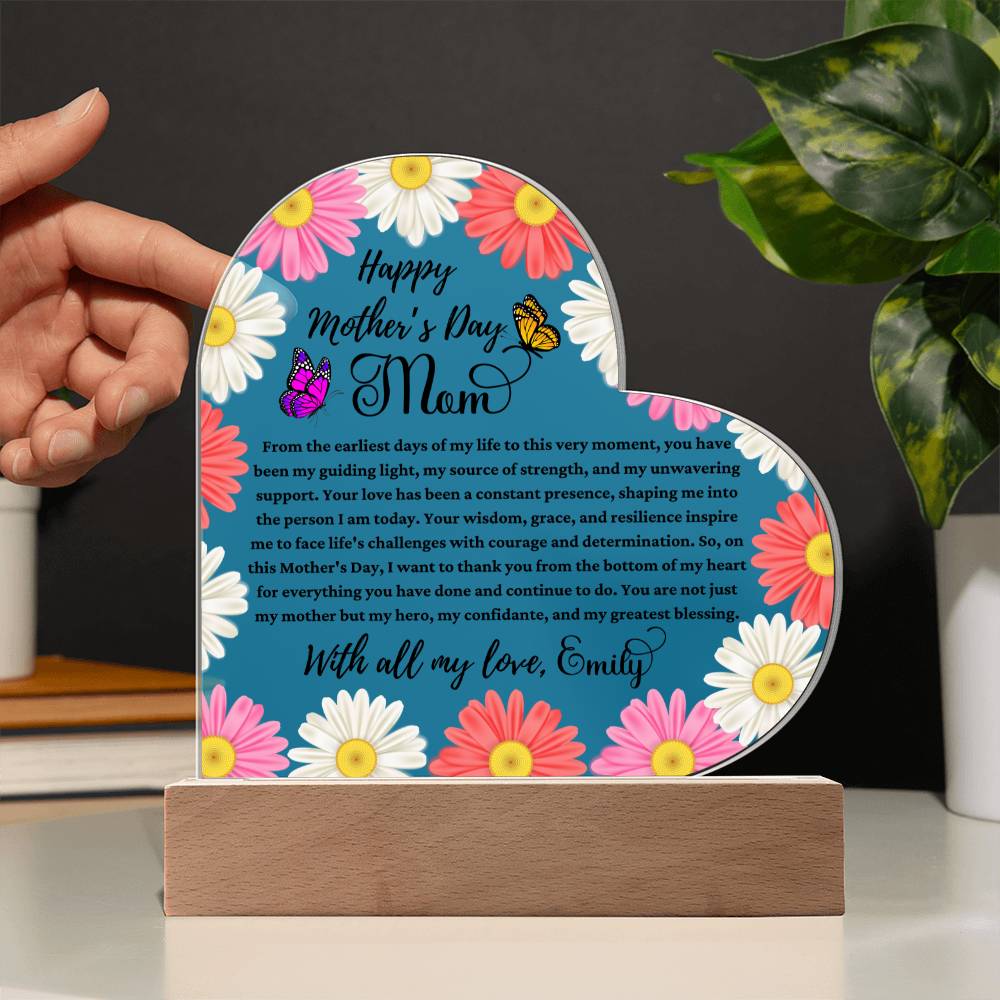 Celebrate Mother's Day in the most heartfelt way with our Happy Mother’s Day Mom Acrylic Heart Plaque, personalized with your name and a touching message just for her.
