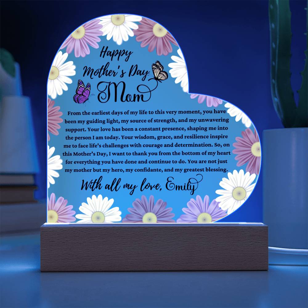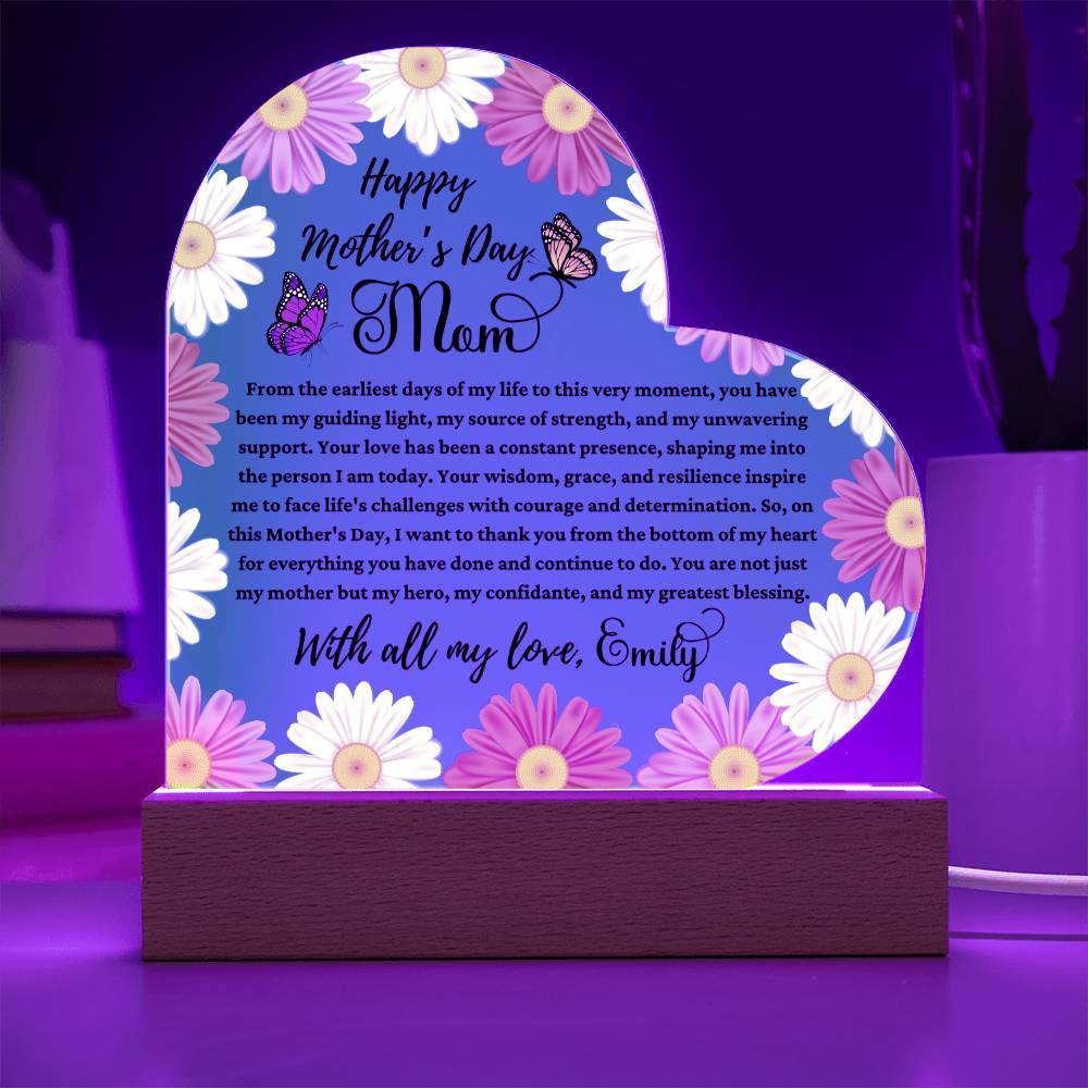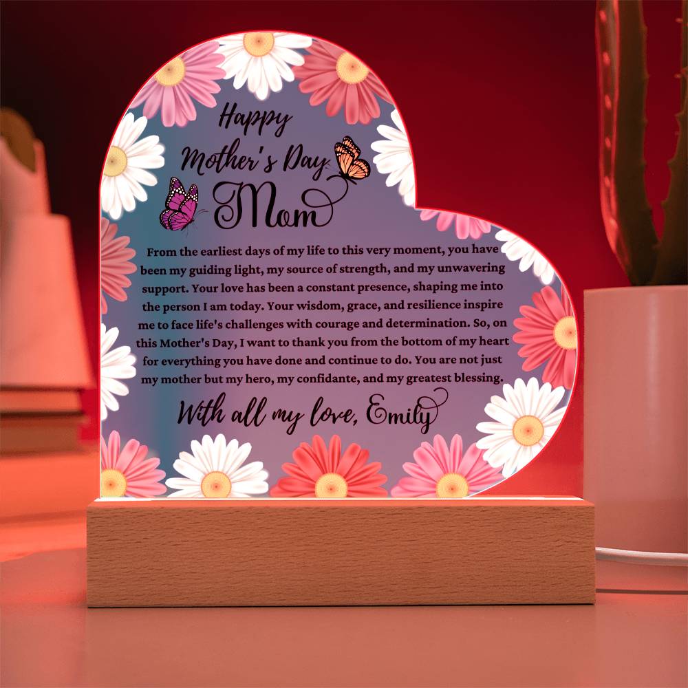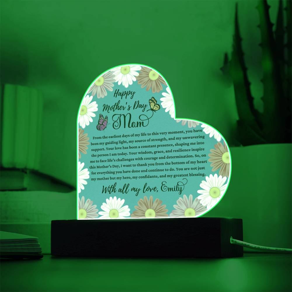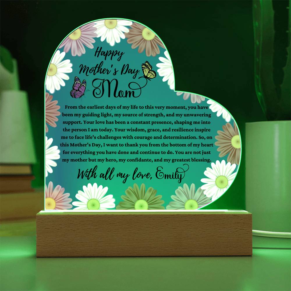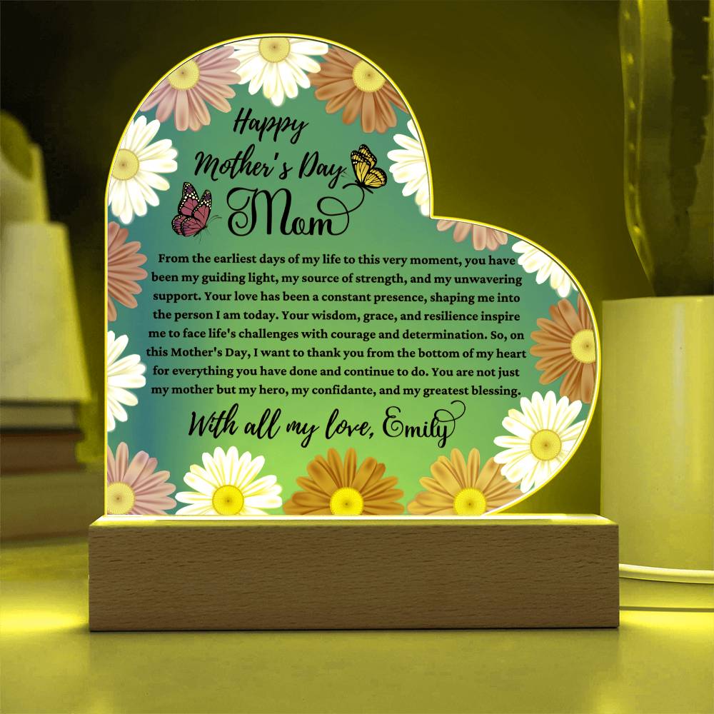 Celebrate Mother's Day in the most heartfelt way with our Happy Mother’s Day Mom Acrylic Heart Plaque, personalized with your name and a touching message just for her.