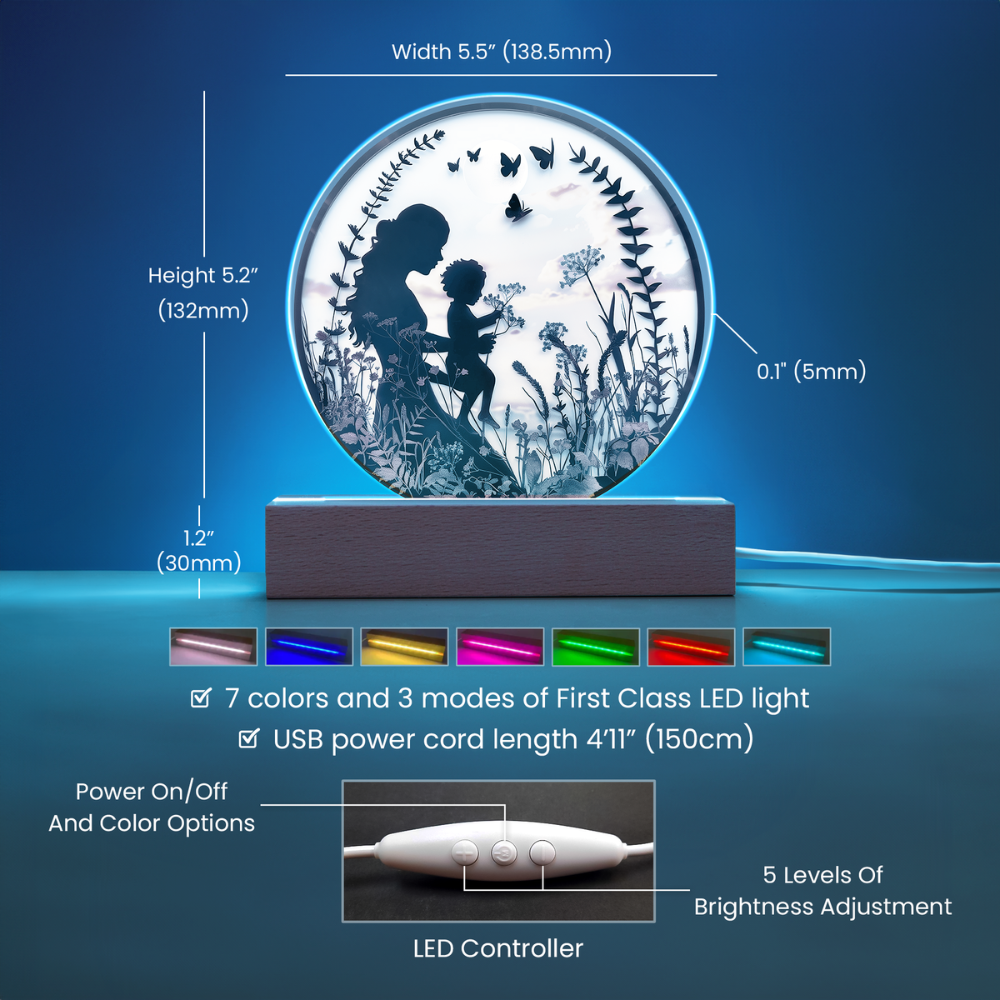 Your plaque will be made from high quality acrylic and will feature a professionally printed design. Your sign features a sleek wooden base, but you can elevate your presentation by upgrading to the wooden LED base with a USB plug-in.